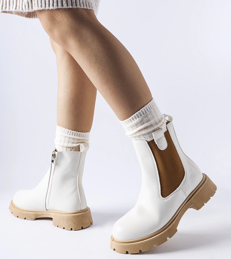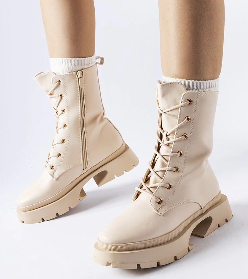 Karmelowe ażurowe mocno wycięte botki eko-zamsz