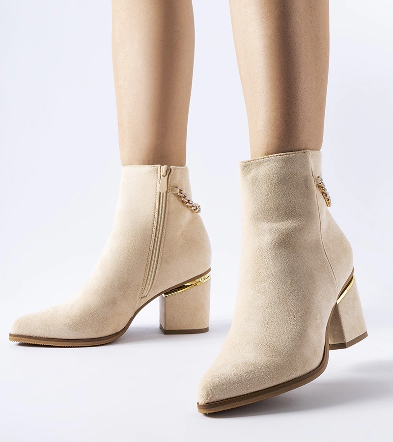 Karmelowe ażurowe mocno wycięte botki eko-zamsz