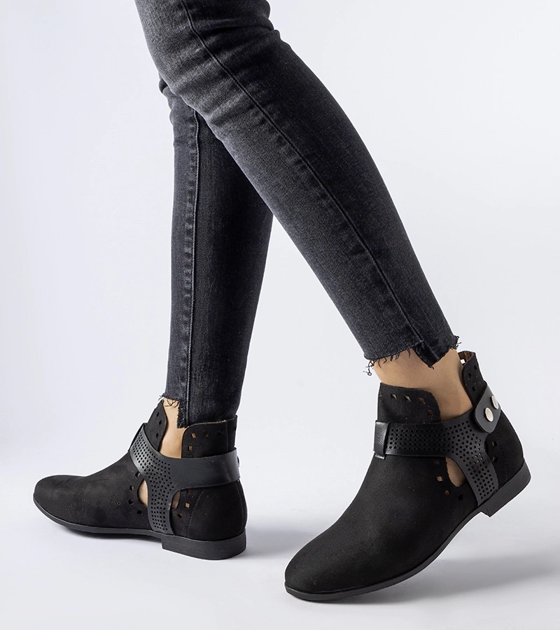 Brązowe ażurowe mocno wycięte botki eko-zamsz