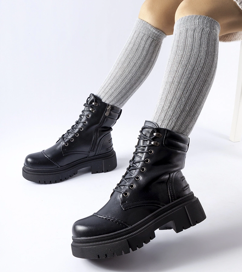 Czarne ocieplane botki na masywnym klocku