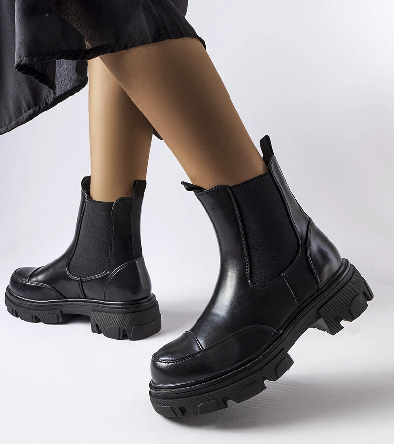 Czarne workery z gumowymi wstawkami