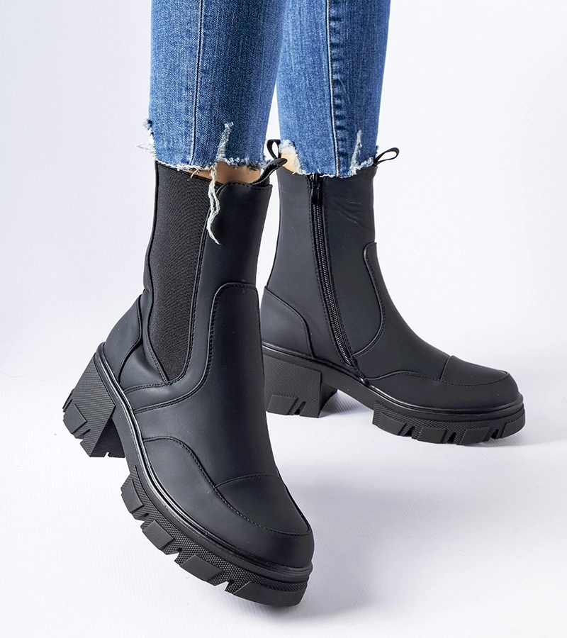 Czarne botki z widocznym protektorem