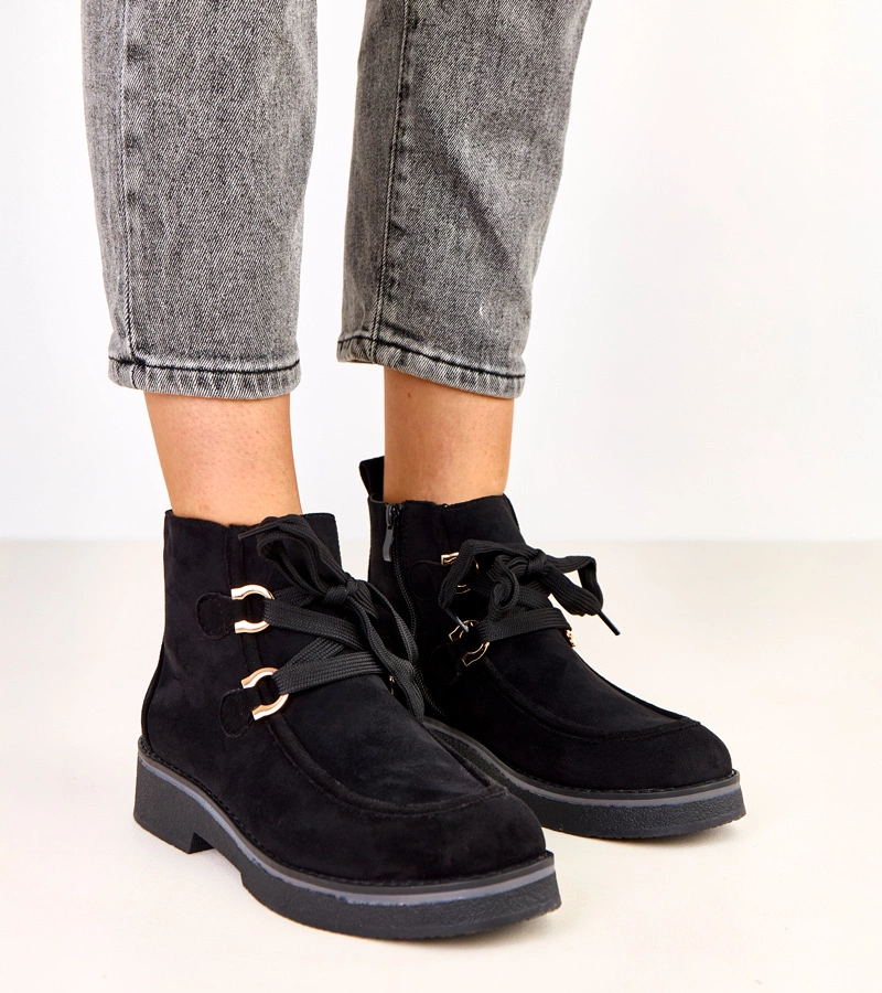 Czarne botki na platformie z eko-zamszu