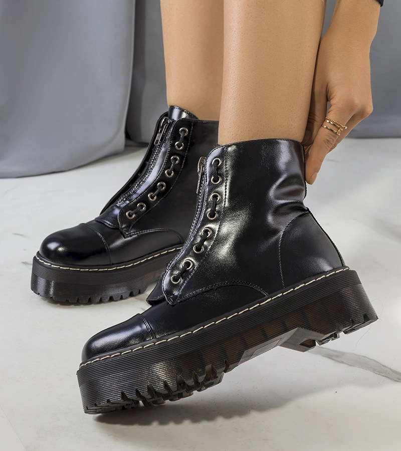 Czarne botki damskie na platformie