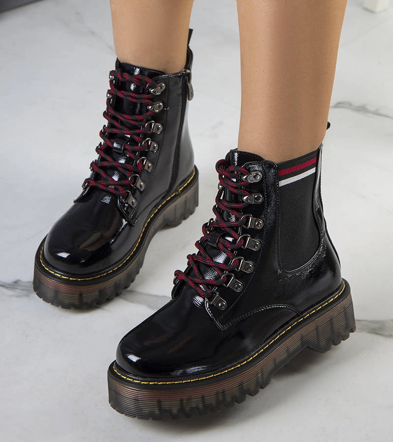 Czarne lakierowane botki typu traperki