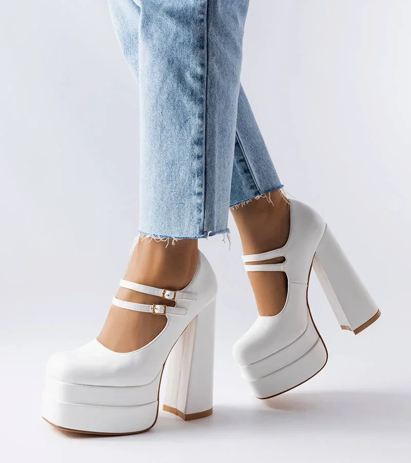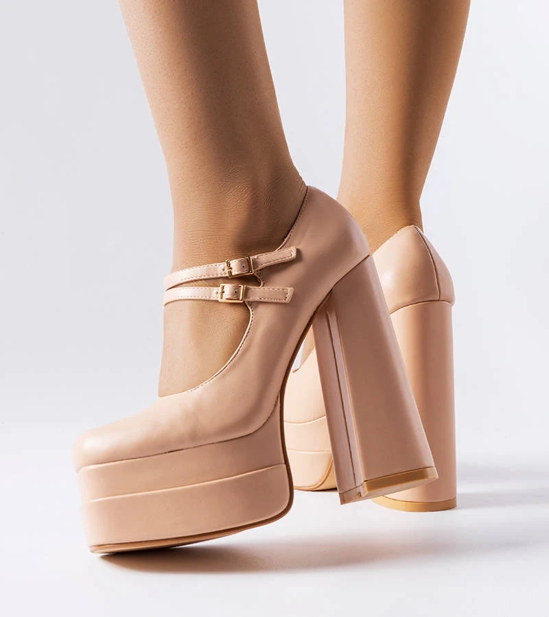 Jasnoróżowe czółenka na masywnym słupku Cher