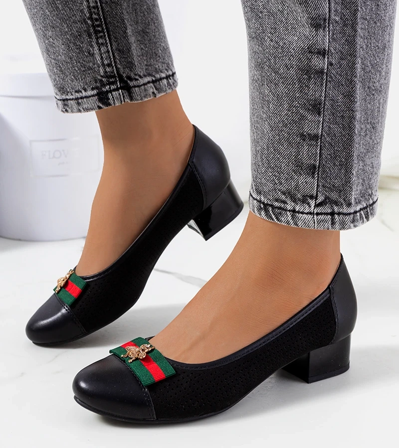 Czarne czółenka z ozdobnym obcasem