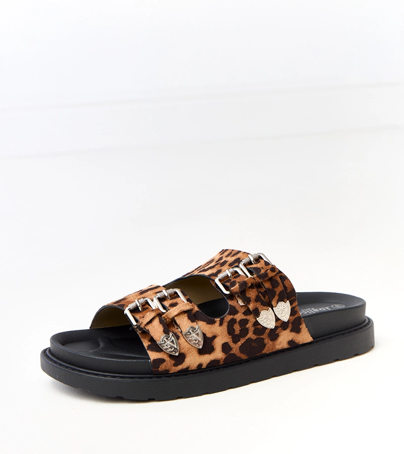Hers Panterkowe damskie klapki z ozdobnymi klamrami