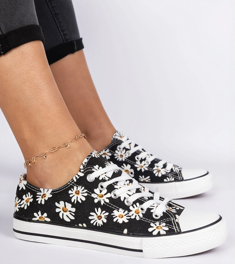 Hers Czarne trampki damskie materiałowe w kwiatuszki