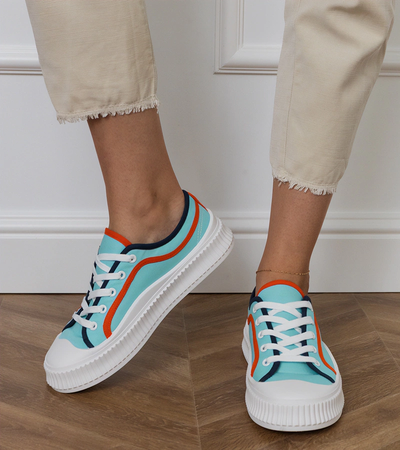 Hers Srebrno- pomarańczowe sneakersy na platformie damskie sportowe