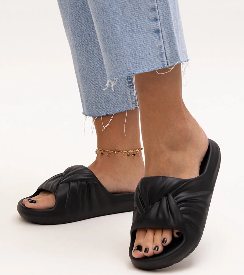 Hers Czarne damskie klapki espadryle