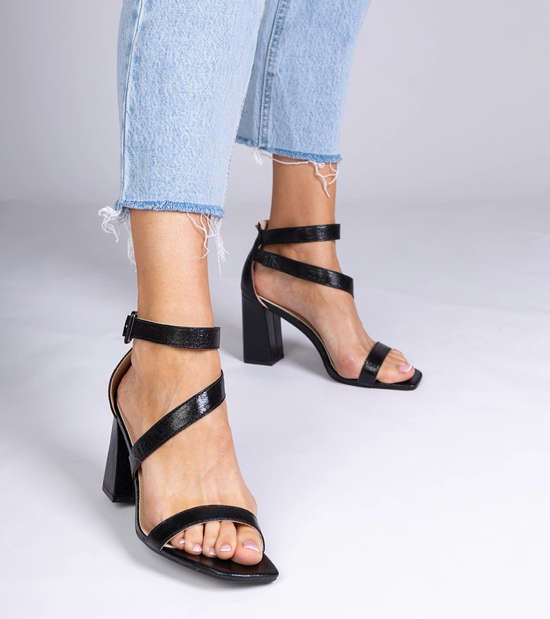 Hers Czarne sandały na słupku ze sprzączką