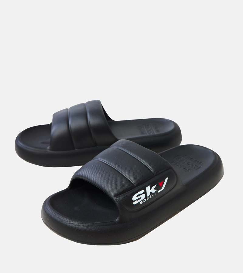 Hers Czarne klapki ze złotą ozdobą na pasku