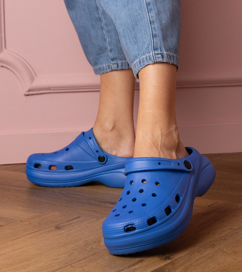 Hers Niebieskie klapki z klamrami na korkowej podeszwie