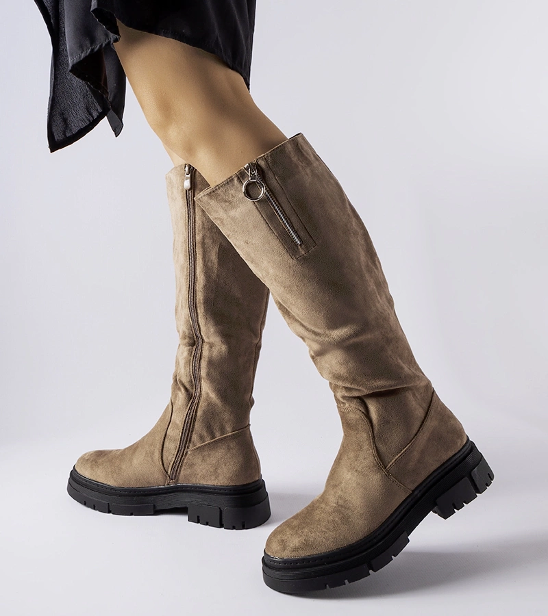 Hers Beżowe botki na płaskiej podeszwie z elastyczną wstawką Terrami