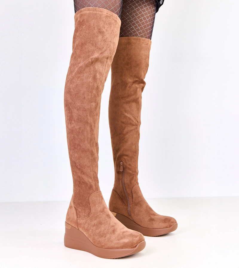 Czarne kozaki na ukrytym koturnie z ćwiekami