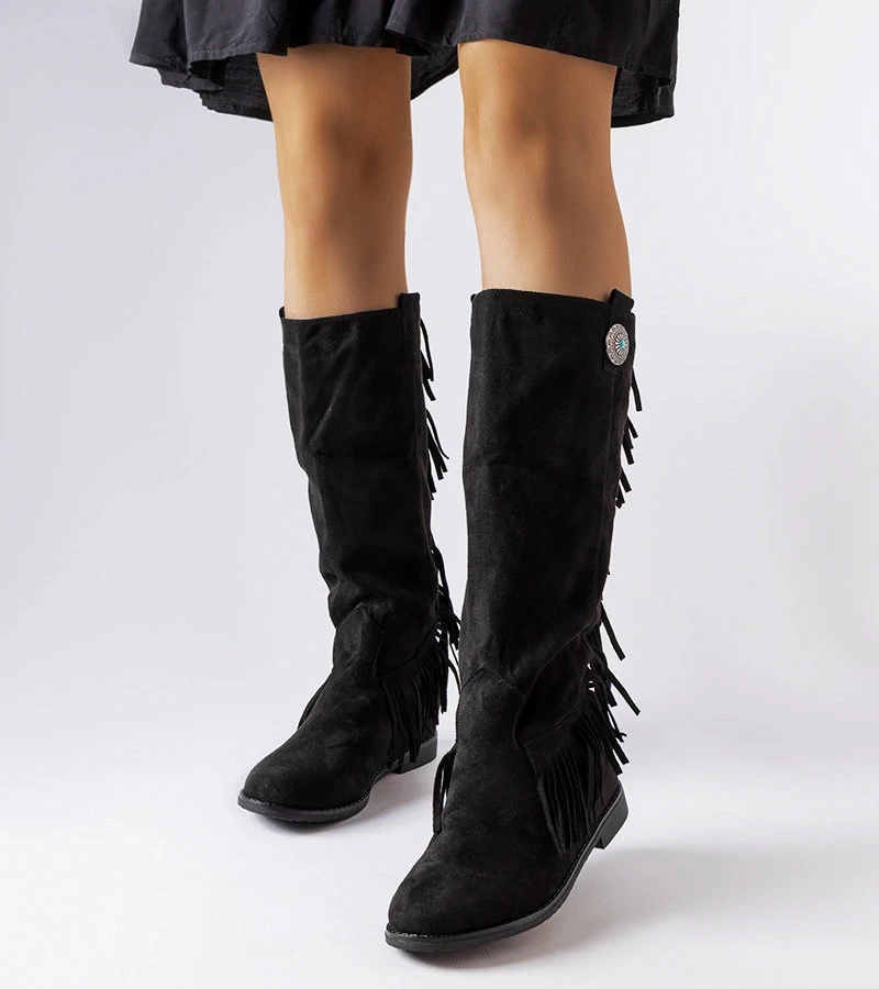 Hers Czarne wsuwane kozaki na szpilce eko-zamsz