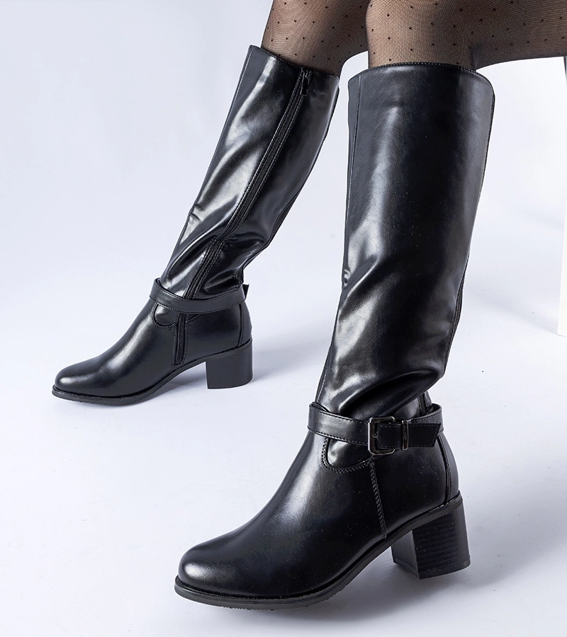Czarne ocieplane kozaki na wysokiej podeszwie