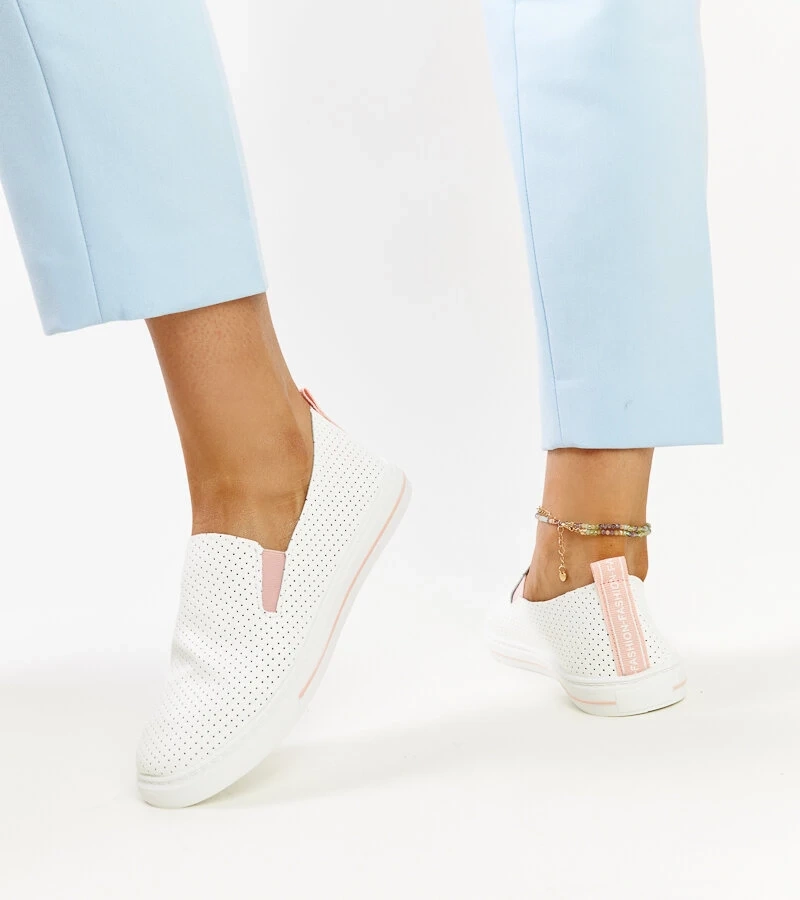 Białe ażurowe skórzane sneakersy