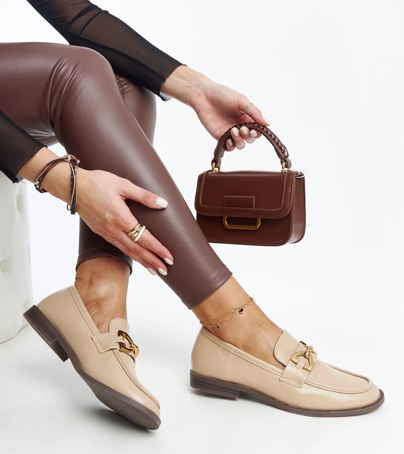 Hers Mokasyny damskie beżowe z cyrkoniami eleganckie