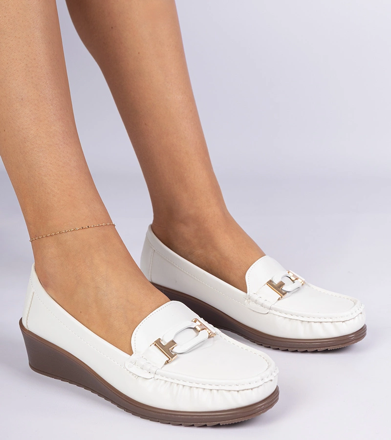 Hers Białe mokasyny damskie na koturnie z ekoskóry