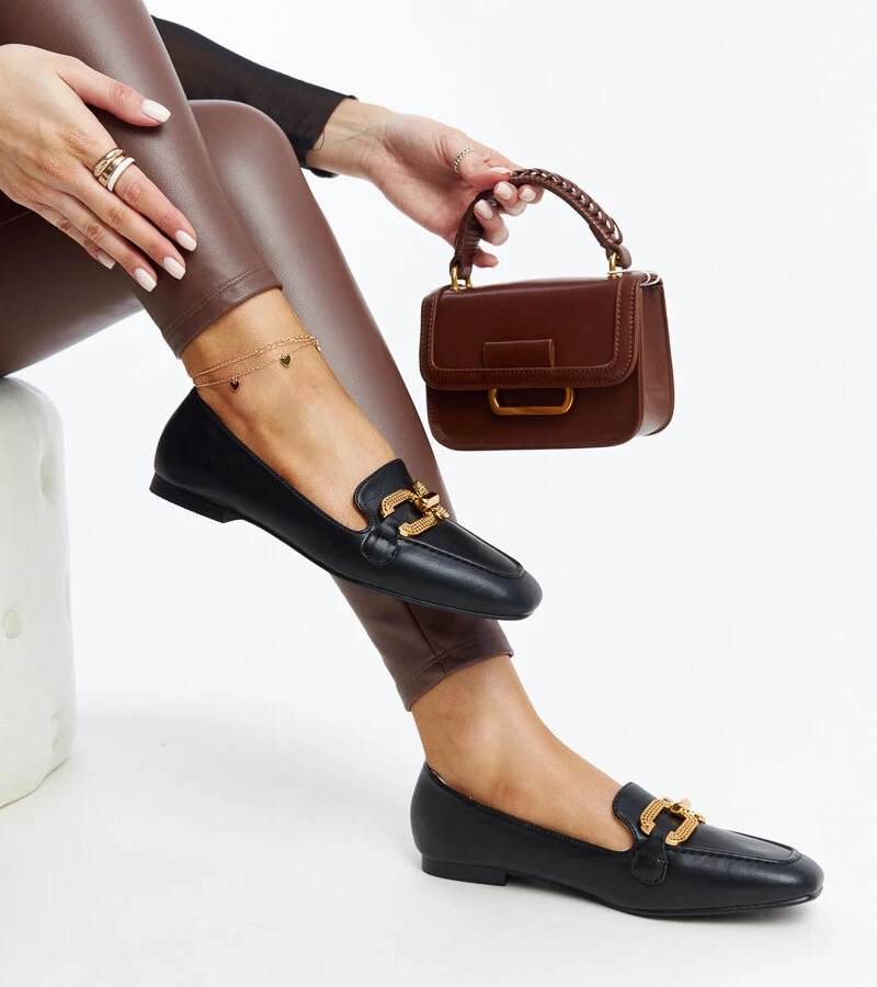 Mokasyny czarne z ozdobnym łańcuszkiem