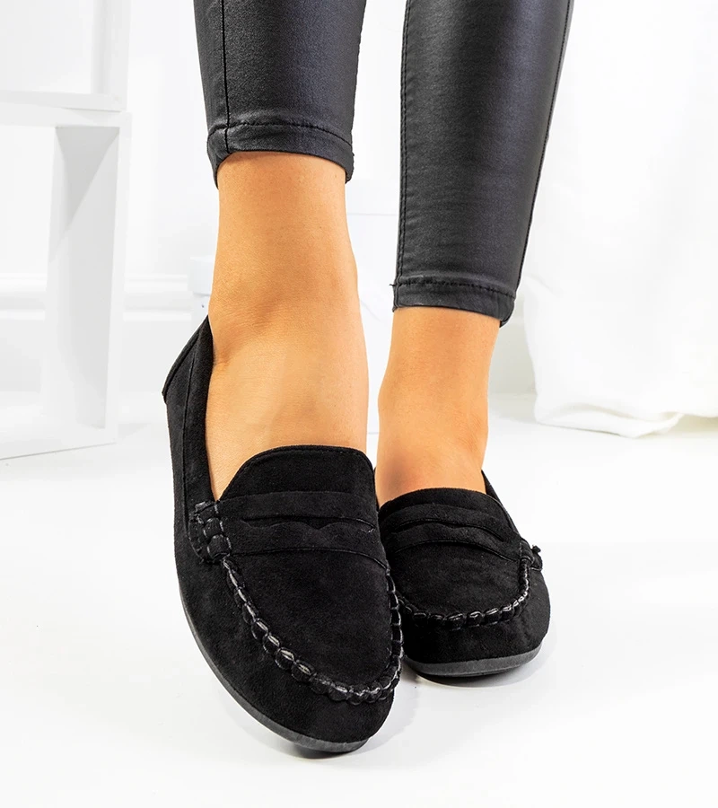 Hers Mokasyny czarne z ozdobnym łańcuchem