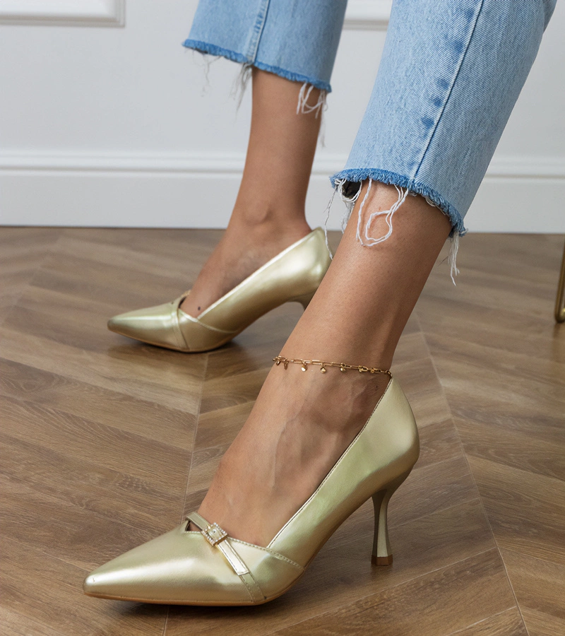 Hers Beżowe klasyczne czółenka na szpilce z cyrkoniami