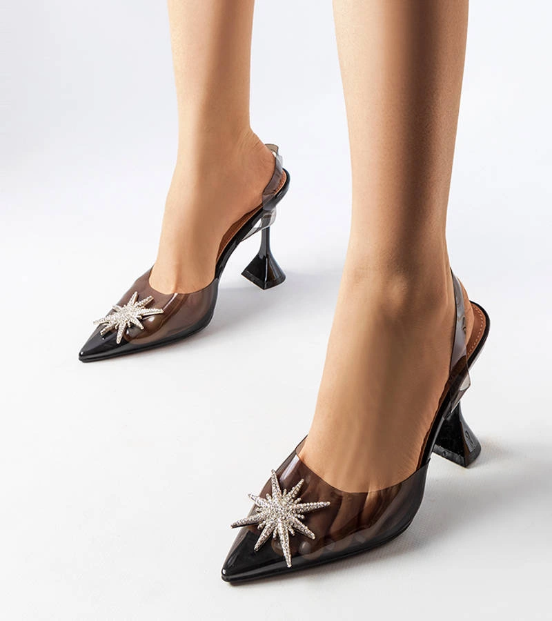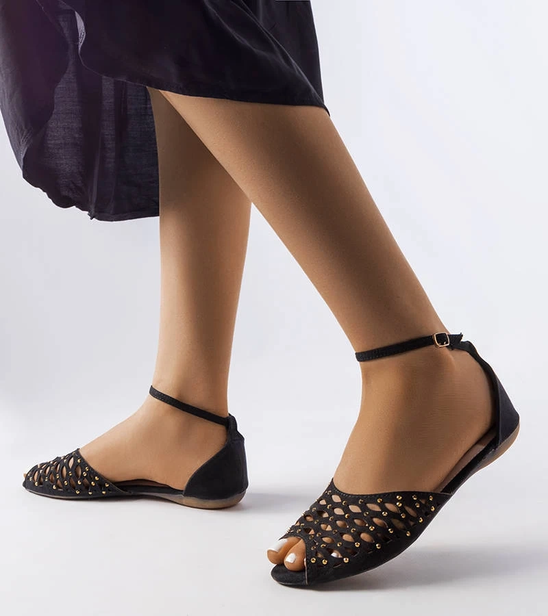 Hers Czarne płaskie sandały zdobione cyrkoniami