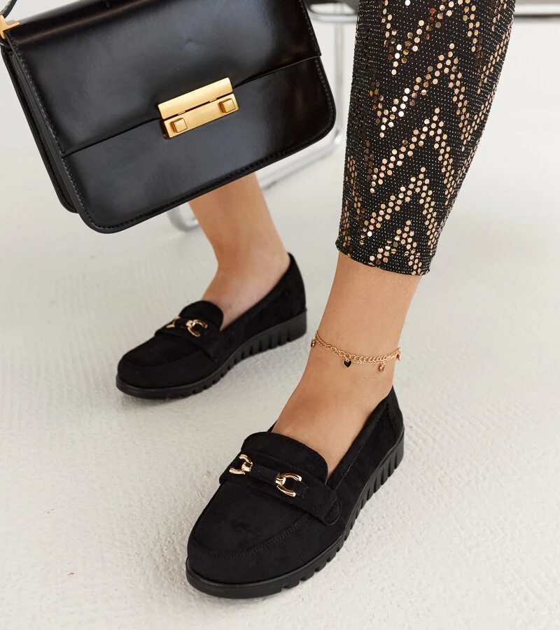 Hers Złote brokatowe mokasyny z cyrkoniami