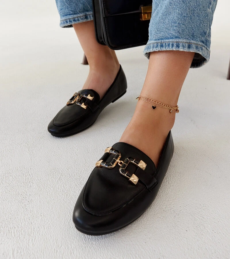 Hers Złote eleganckie mokasyny ze złotą ozdobą i cyrkoniami