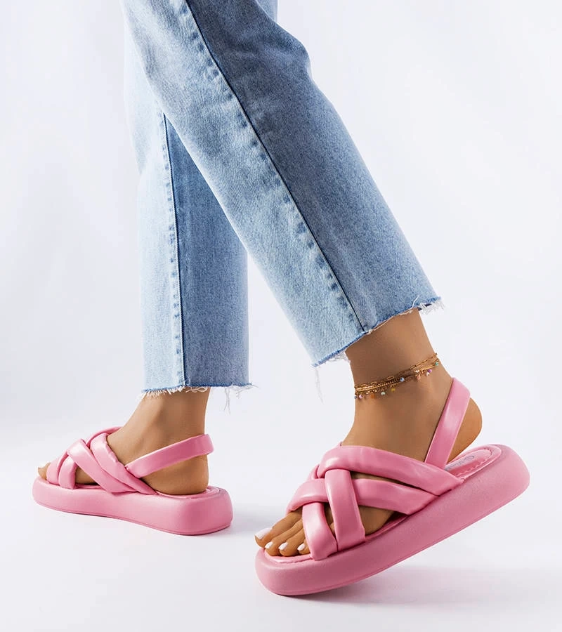 Fioletowe klapki z cyrkoniami i marszczeniem