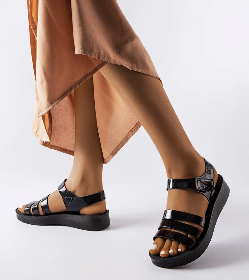 Czarne lakierowane sandały na platformie