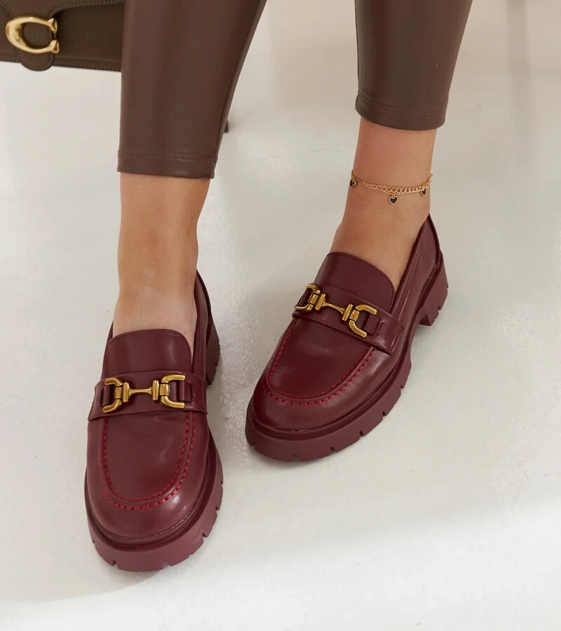 Bordowe welurowe mokasyny z cyrkoniami