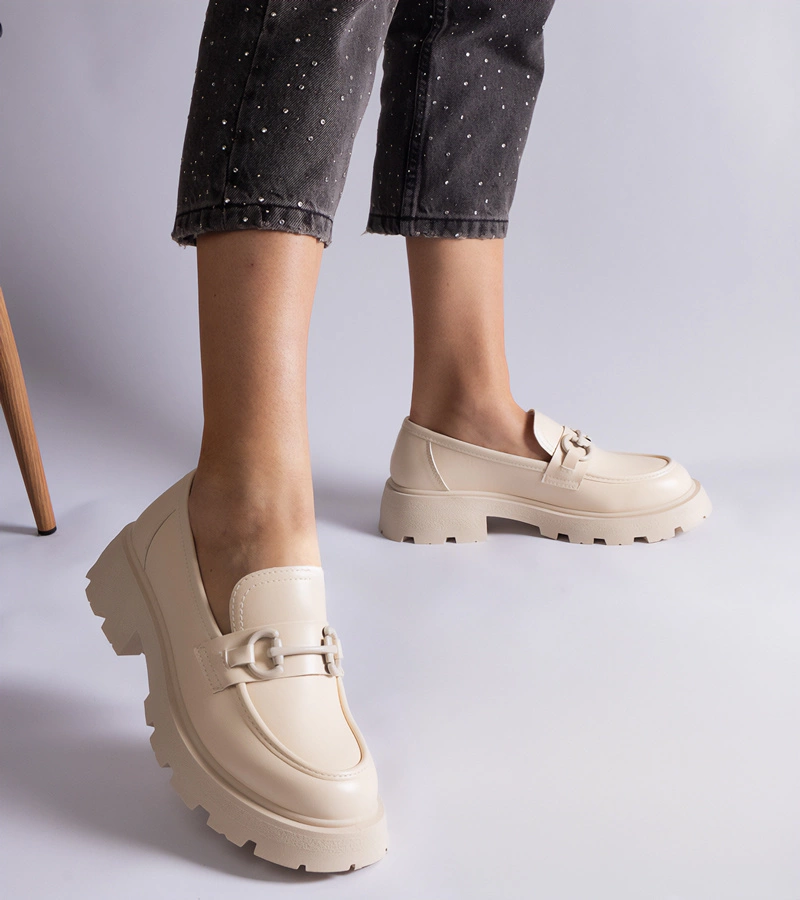 Hers Mokasyny damskie beżowe z cyrkoniami eleganckie
