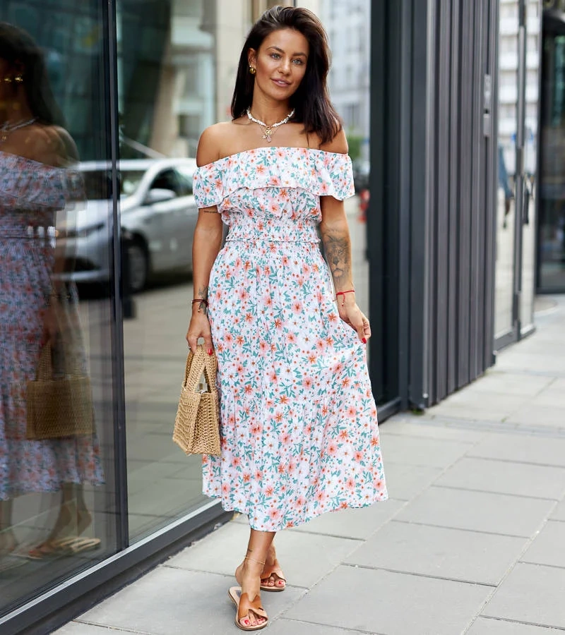 Pomarańczowo-różowa sukienka maxi w kwiatki