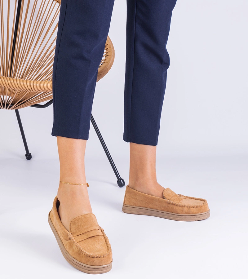 Hers mokasyny damskie brązowe z ekozamszu eleganckie