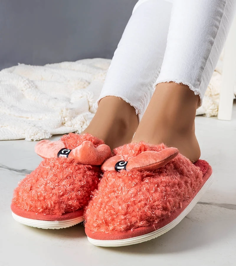 Ciemnoróżowe puchate kapcie