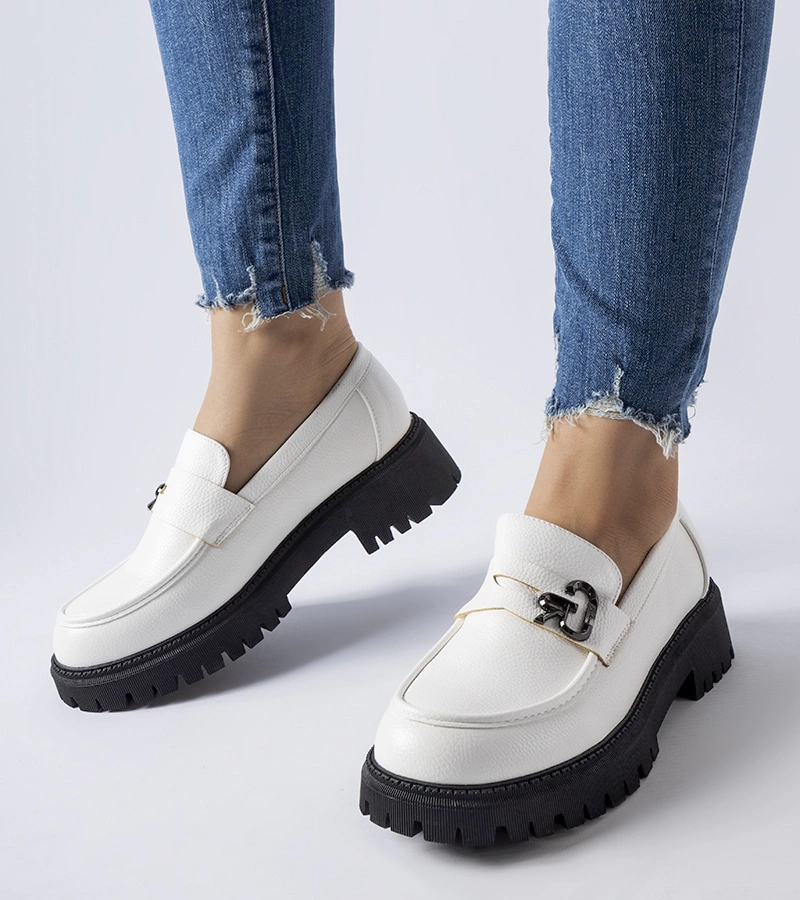Biało-czarne klasyczne mokasyny z klamerką