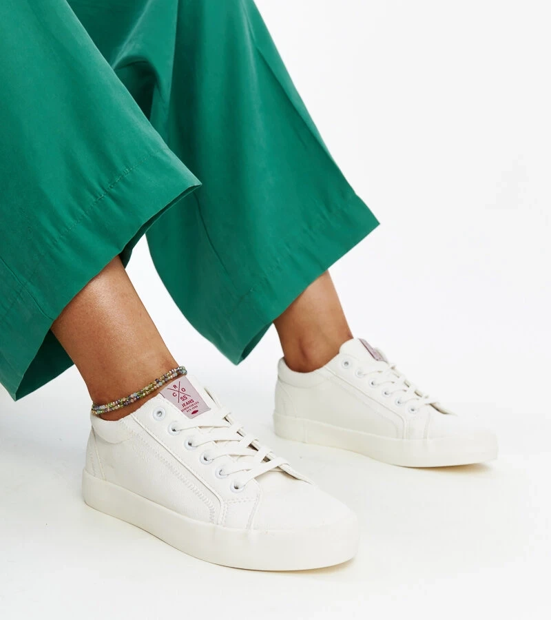 Ciemnobeżowe skórzane sneakersy z cyrkoniami