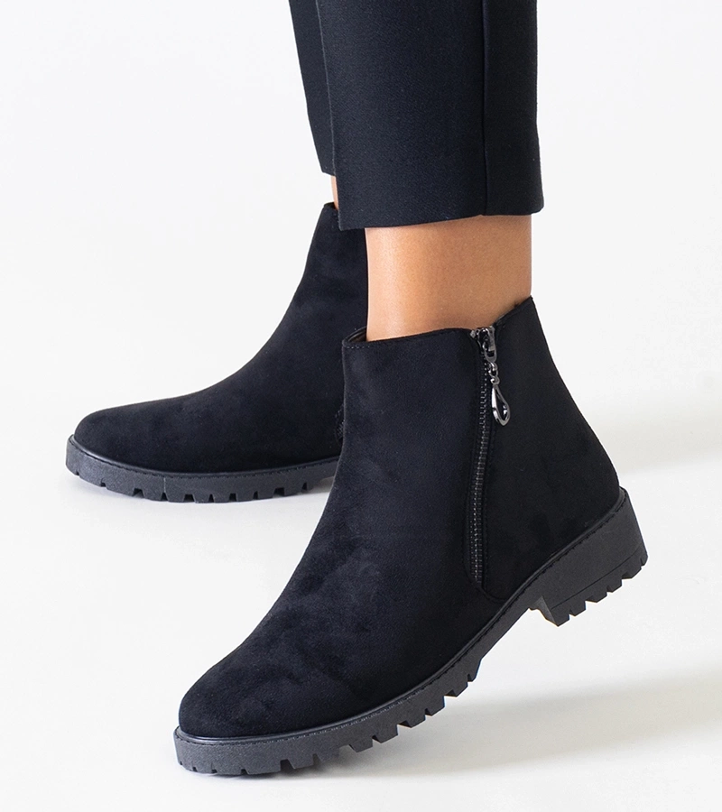 Czarne botki z metalowymi wstawkami eko-zamsz