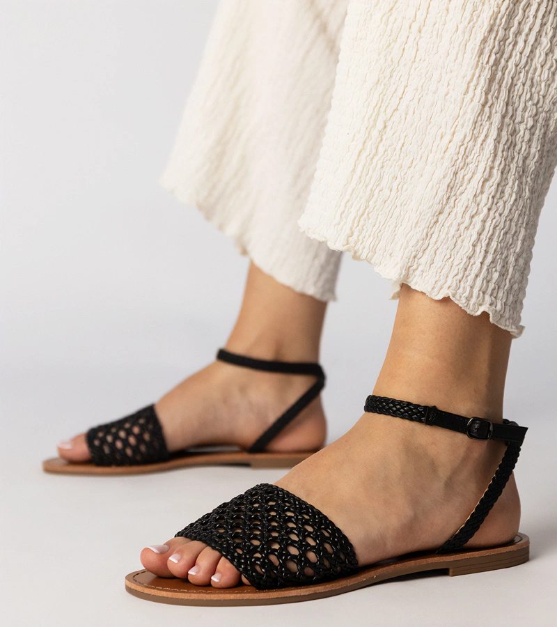 Hers Czarne sandały plecione na płaskiej podeszwie
