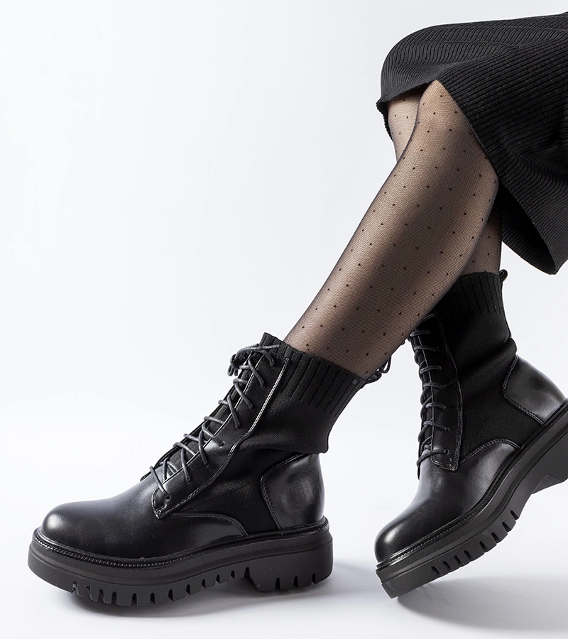 Czarne ocieplane śniegowce sznurowane zdobione futerkiem