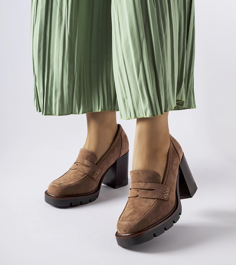 Brązowe czółenka ze skórzana wkładką Vinceza