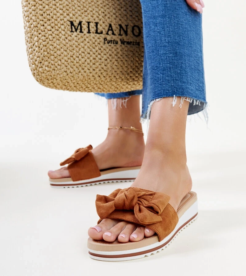 Hers Brązowe damskie balerinki welurowe z klamrą