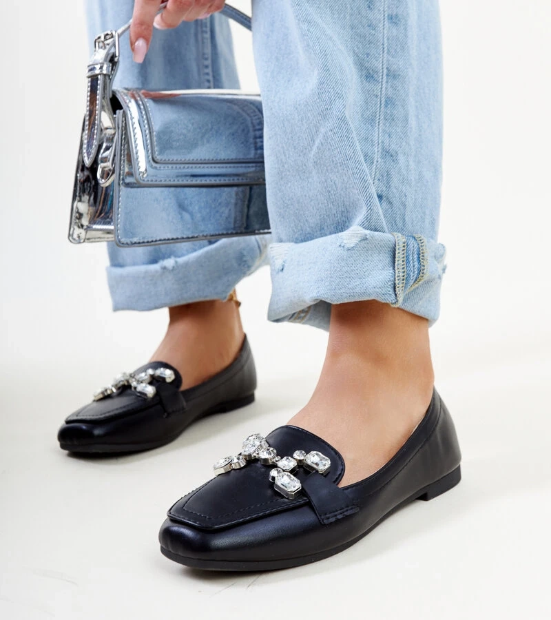 Hers Srebrne brokatowe mokasyny z cyrkoniami