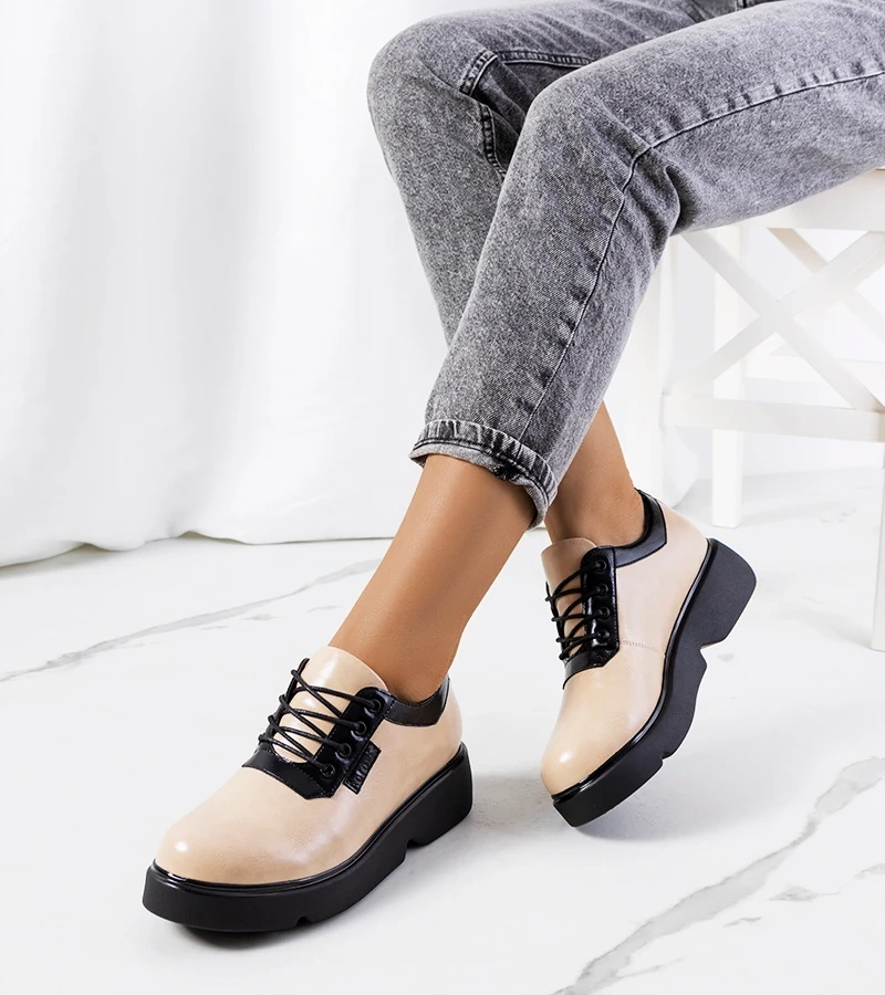 Półbuty brązowe z eko-zamszu na masywnej podeszwie