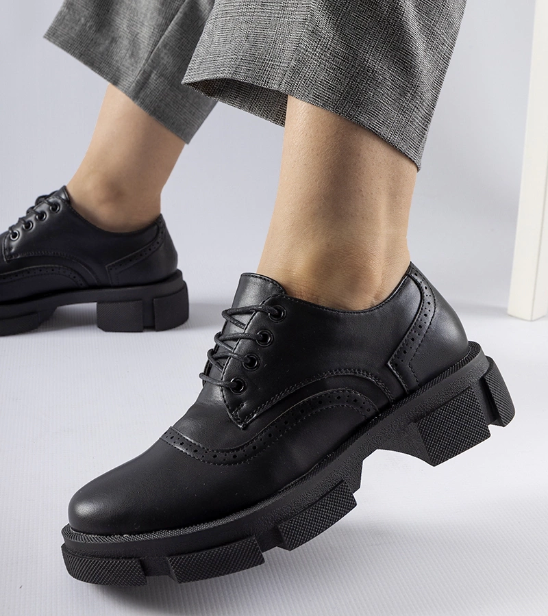 Czarne lakierowane półbuty ze skórzaną wkładką