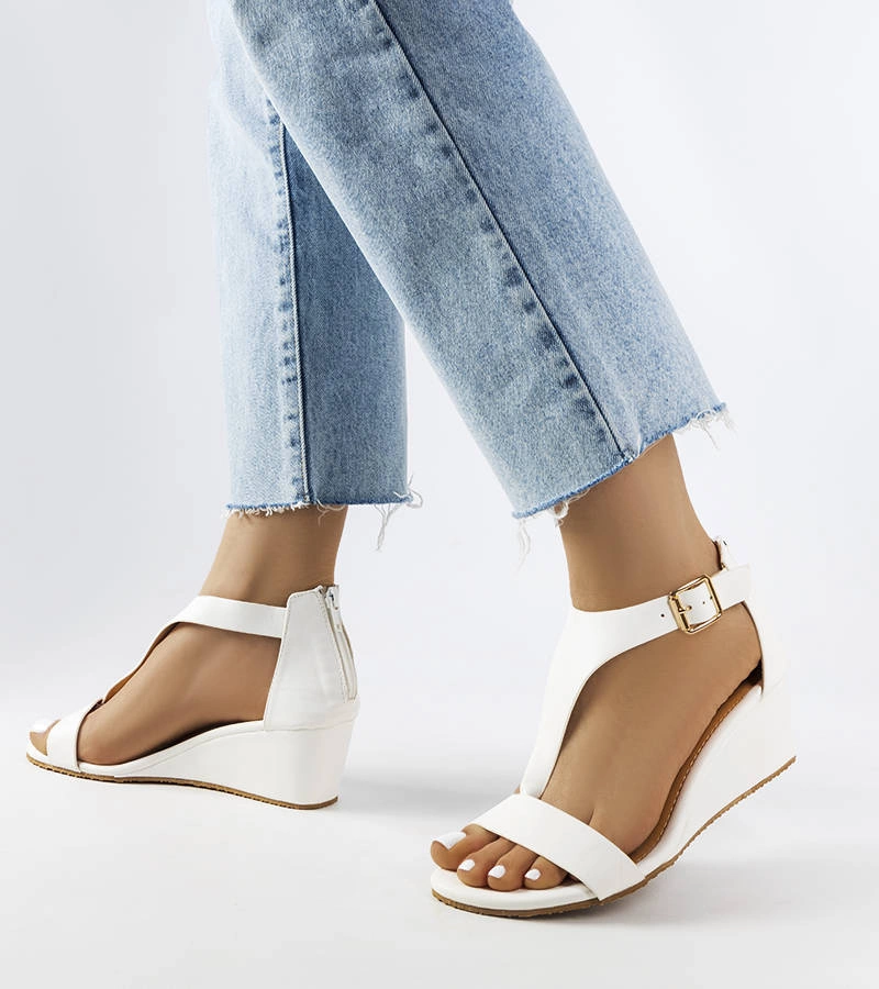 Białe sandały na niskim obcasie ze sportową podeszwą