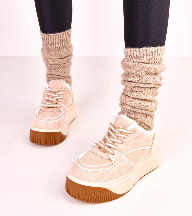 Beżowe sneakersy ze zdobionym zapiętkiem